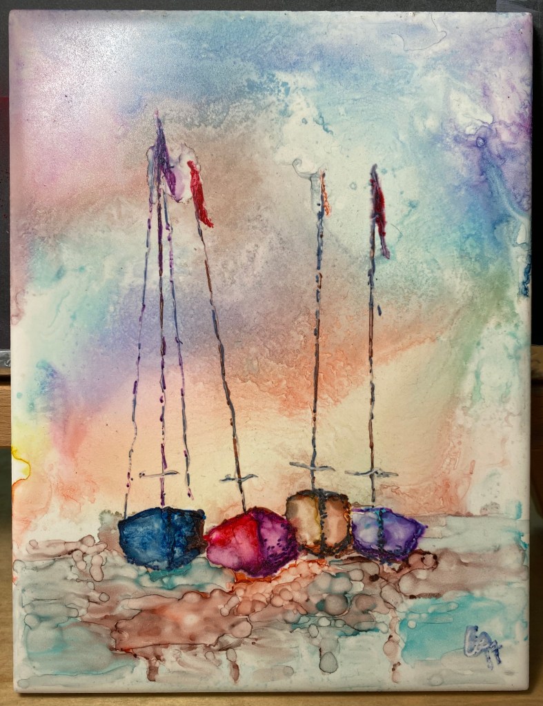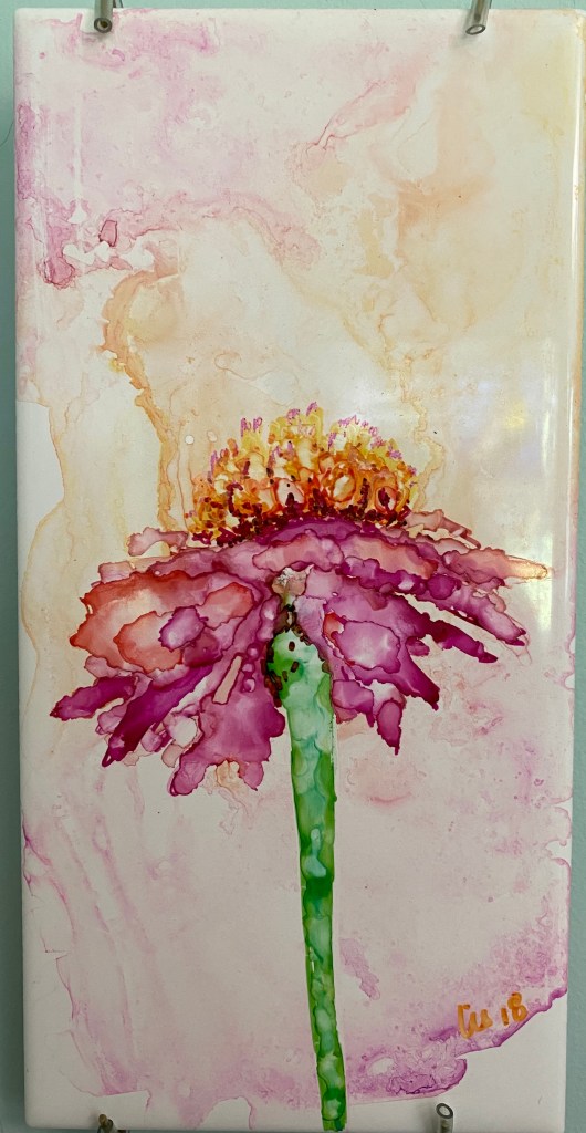 One of my favorite little projects has been sharpies and alcohol. They mimic watercolors with their transparent and bright colors. It is very similar to using alcohol inks but I feel it is a lot more flexible in its color range. Simply use a ceramic tile and add your color using sharpies. After applying the sharpie color, add drops of 90% alcohol and watch your creation come together. Once it is dry, you will want to protect it by spraying a clear coat over it.